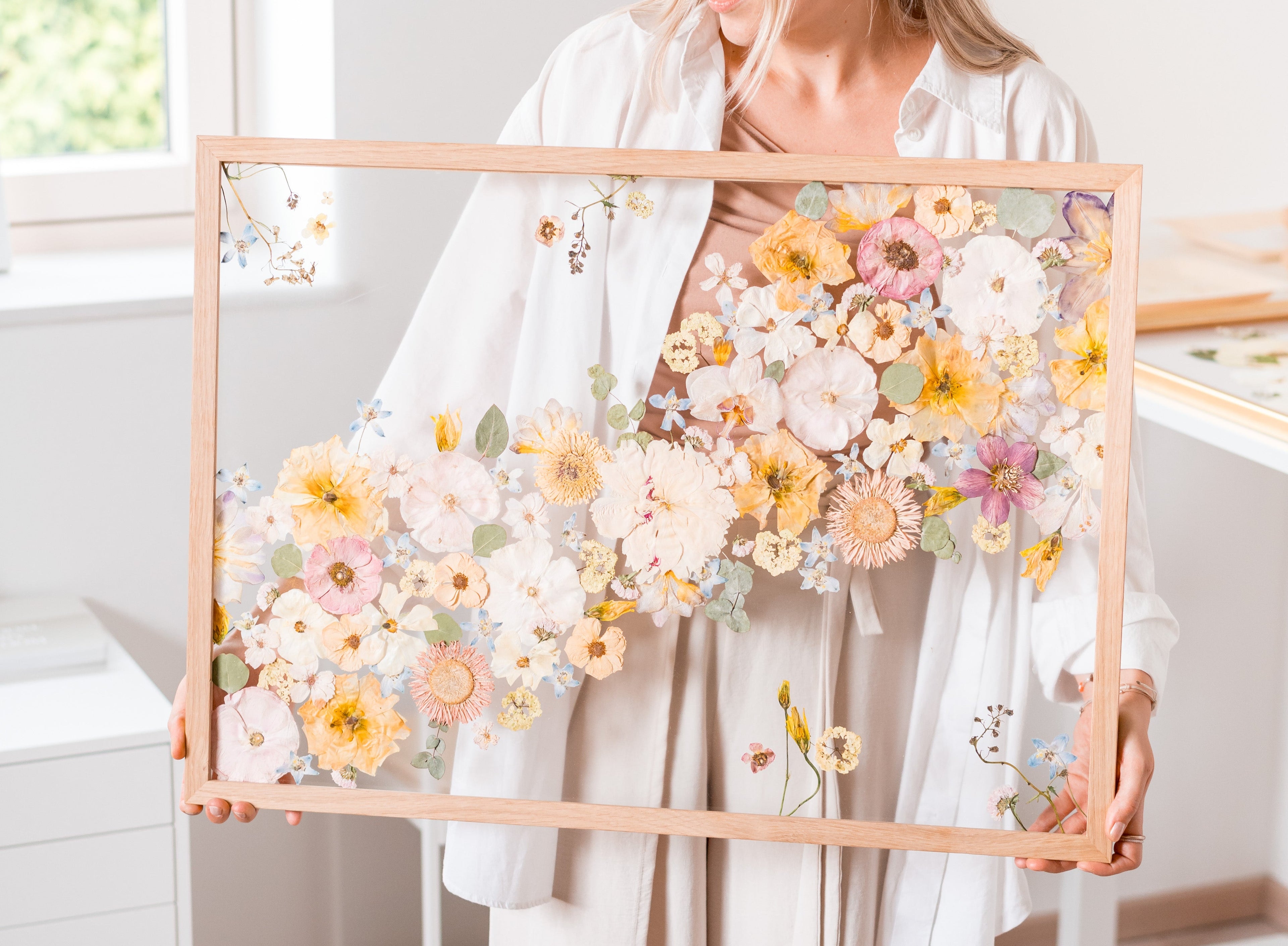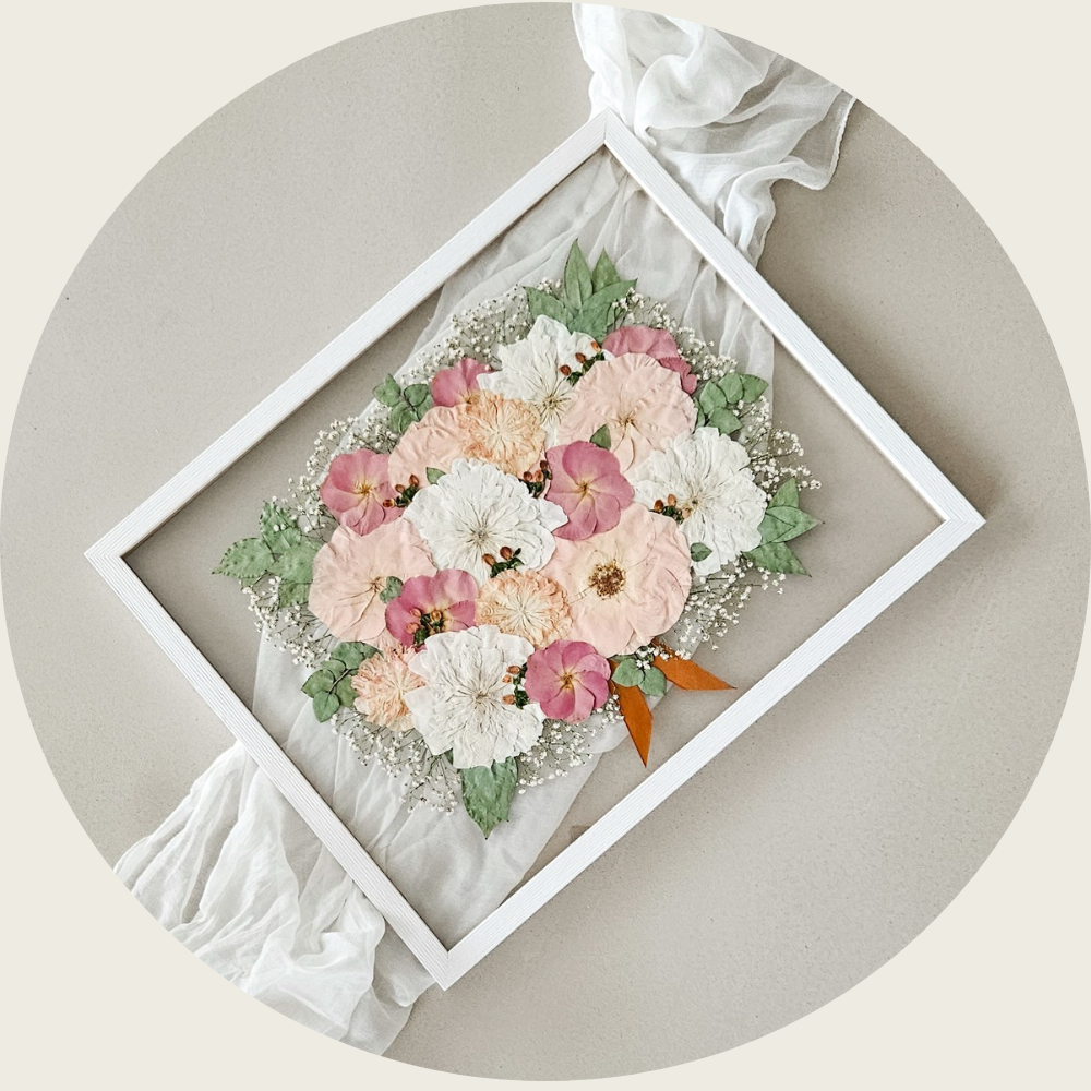 Ob Brautstrauß, Blumen zur Verlobung, zur Geburt, zum Geburtstag oder zur Erinnerung an einen geliebten Menschen - jedes Arrangement erzählt eure Geschichte. Mit viel Liebe interpretiere ich die Kunst des Blumenpressens neu und lasse besondere Momente in Floral Frame weiterleben.
